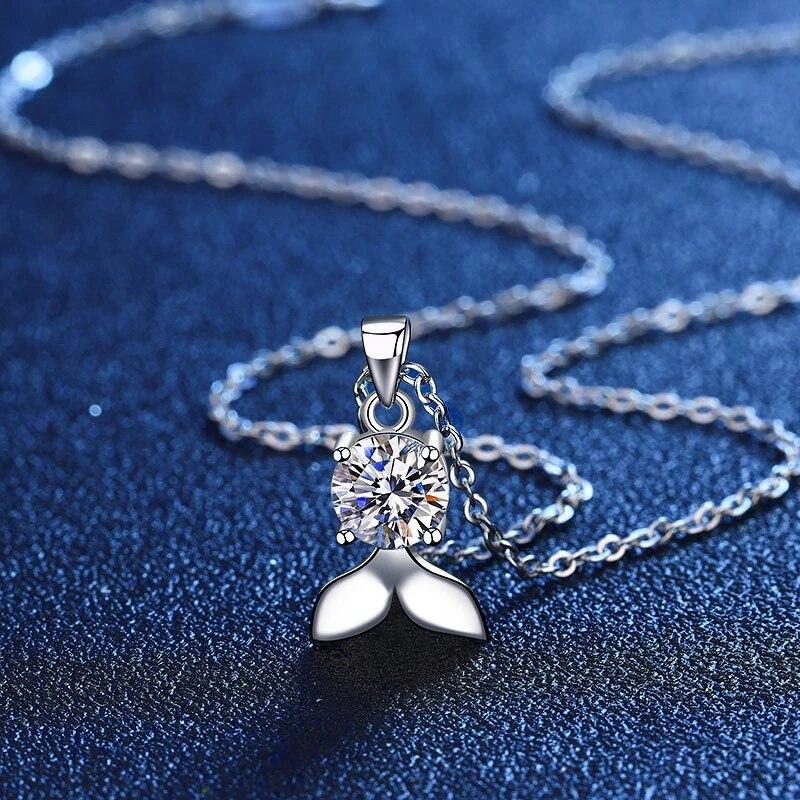 Женское ожерелье с подвеской из стерлингового серебра S925, 1 карат GRA VVS1, ожерелье с муассанитом, бриллиантами, русалкой, ювелирные изделия, подарок для женщин и девочек