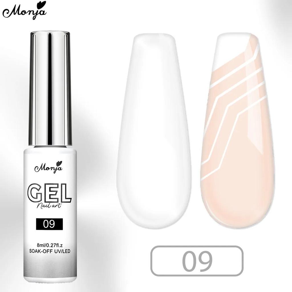 monja Гель для ногтей, 8 мл, кисть для подводки бутылок, УФ-лак, линия для рисования, отмачиваемый лак, DIY маникюр, рисунок, дизайн, аксессуары, черный, белый цвет, лак