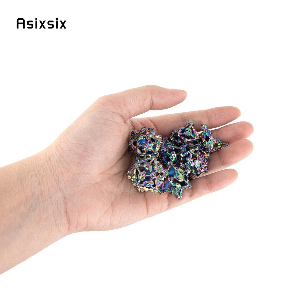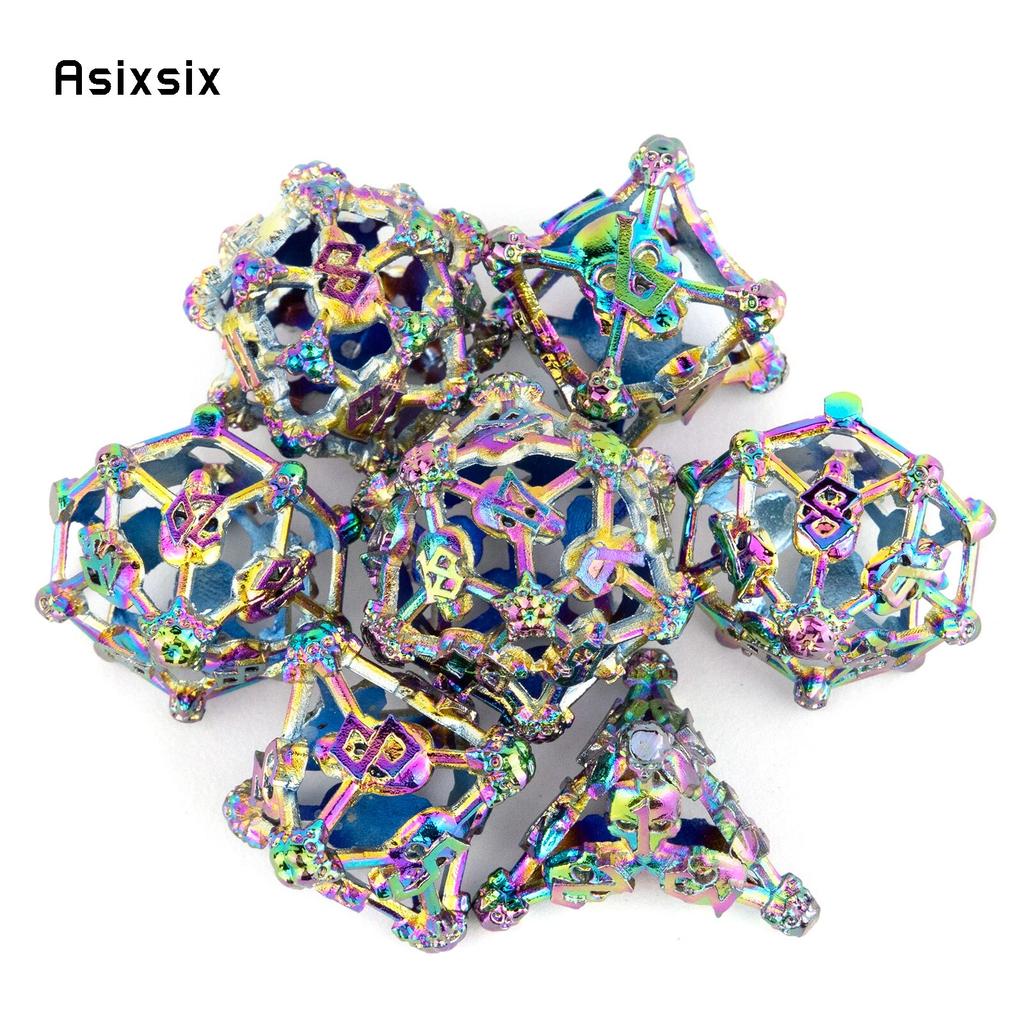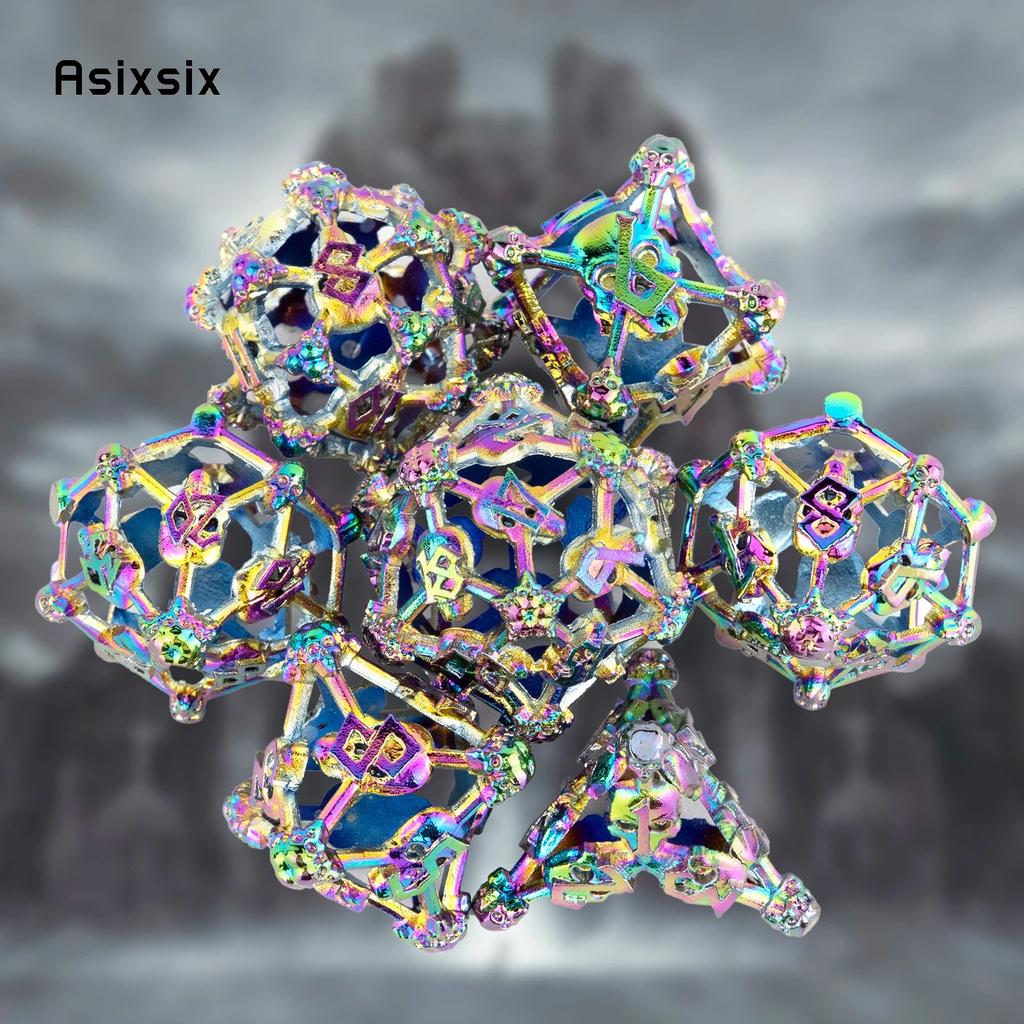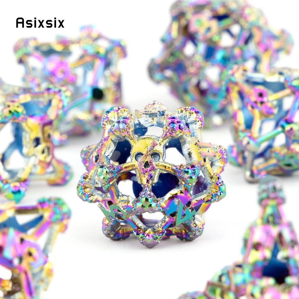 7 шт. красочные металлические кубики с головой черепа, набор полых металлических многогранных кубиков, подходящий для ролевой игры, настольной игры, карточной игры