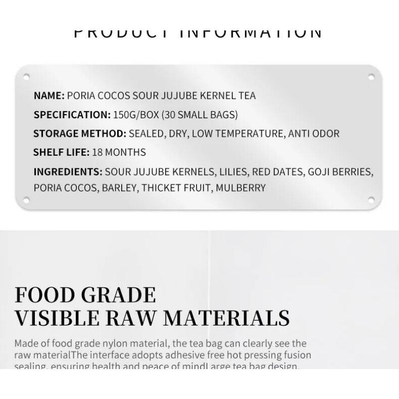 Чай Poria Cocos Sour Jujube Kernel, полезный травяной чай в пакетиках, 150 г/30 пакетов