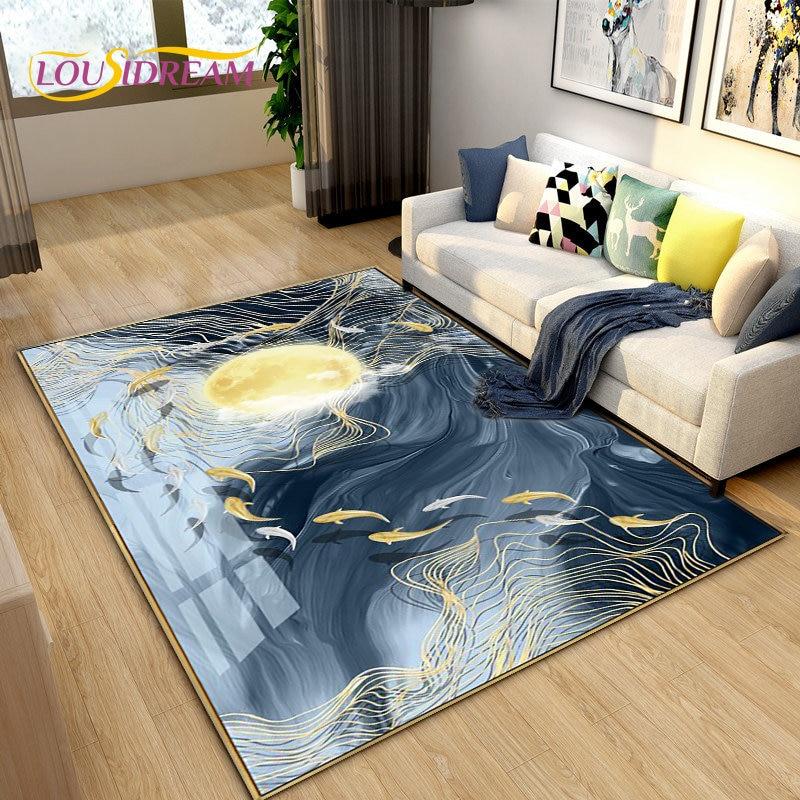 Скандинавский роскошный 3D ковер с рыбой и карпом, большой ковер, ковер для гостиной, спальни, украшение дивана, кухонный коврик, нескользящий напольный коврик