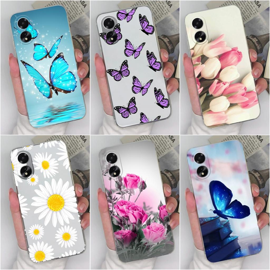 Чехол для OPPO Realme C53 Narzo N53 Reno10 A38 A79 A98, модный противоударный чехол с цветком и бабочкой, матовый прозрачный мягкий силиконовый чехол для OPPO Shell