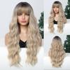LOUIS FERRE Серо-коричневый Ombre Блондинка Волнистые парики Длинный вьющийся парик с натуральной волной для женщин Накладные волосы с челкой Ежедневный парик из волокна для косплея