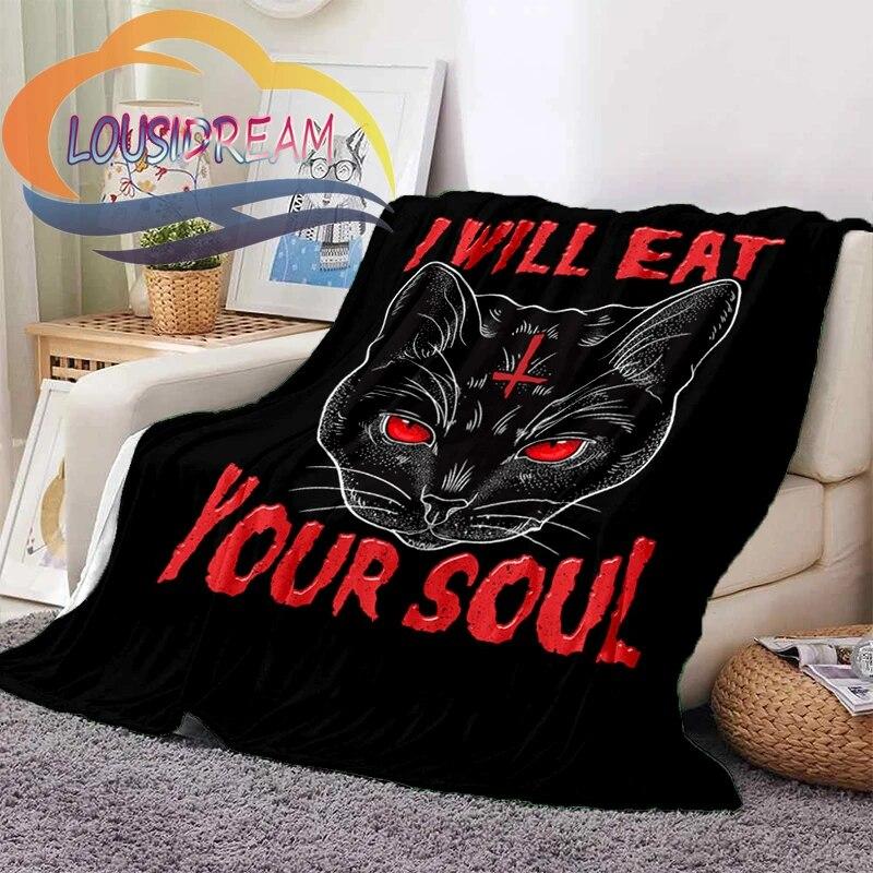 Одеяло «Съешь свою душу-сатанинский-оккультный кот», плед сатанинской фланели, пустой фон для взрослых и детей, подарок на Хэллоуин
