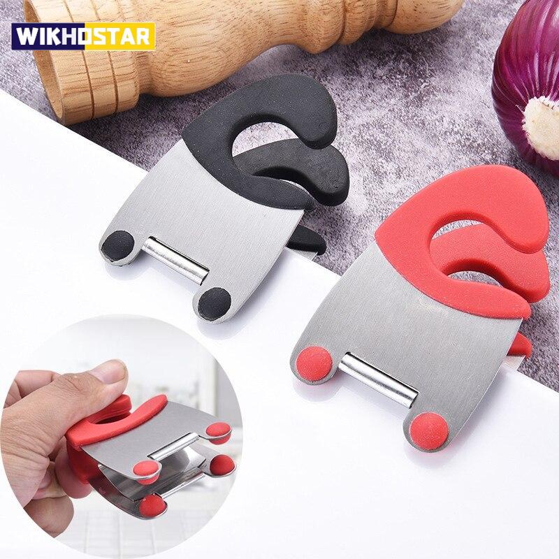 Боковые зажимы для кастрюли из нержавеющей стали, держатель для ложки, силиконовая ручка для защиты от ожогов, держатель для кастрюли, кухонные гаджеты, резиновая подставка для посуды