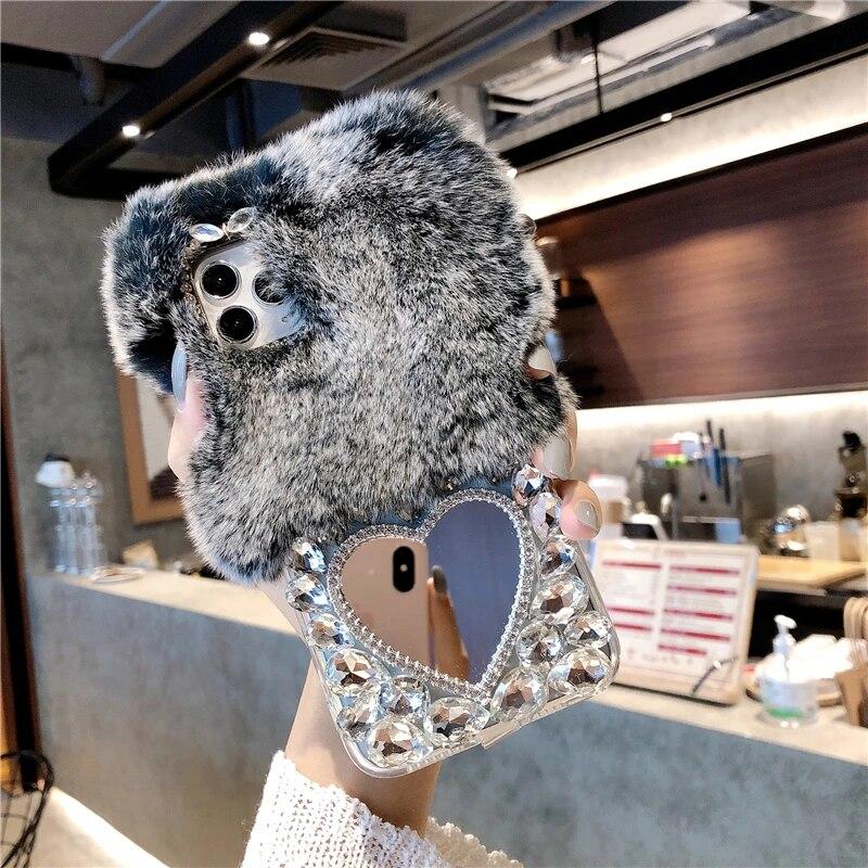 Чехол из пушистого меха кролика для Samsung S24 Ultra S23 Fe S22 Plus A15 A25 A35 A55 A14 A24 A34 A54 A13 A53, роскошный роскошный теплый пушистый плюшевый чехол со стразами — купить товар онлайн с бесплатной доставкой по всему миру!