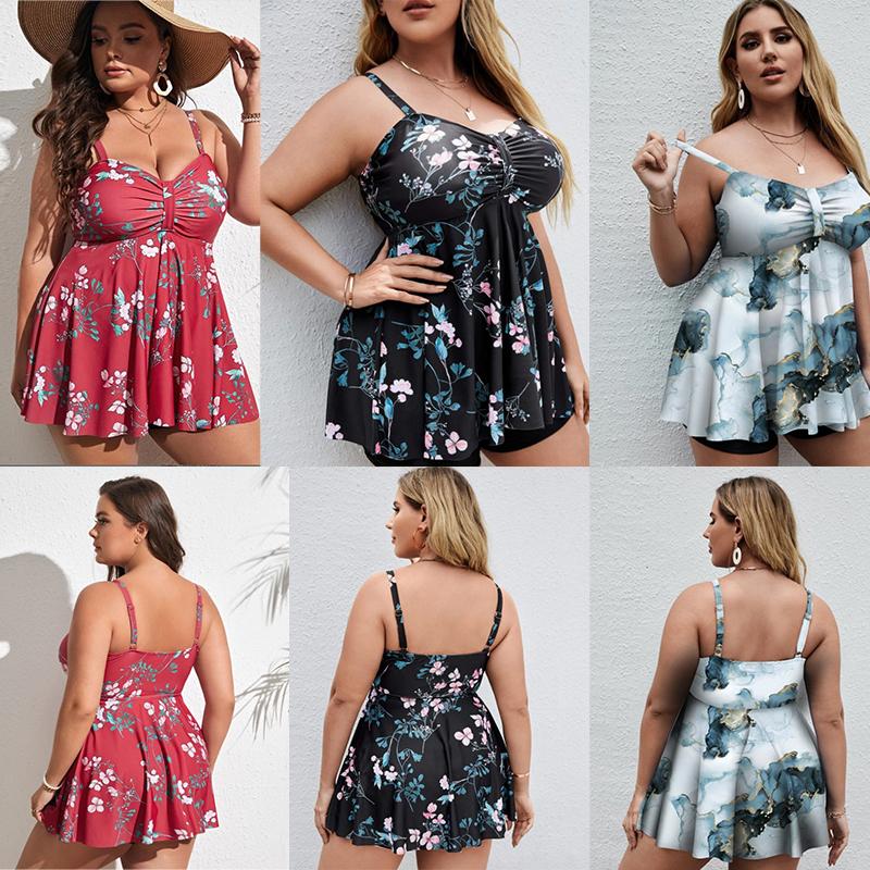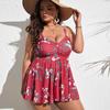 Женский танкини с цветочным принтом больших размеров, купальник с контролем живота, топ на бретелях, купальник в стиле ретро с принтом, купальный костюм из двух предметов