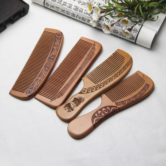 Выгравированная персиковая древесина, здоровый массажный антистатический инструмент для ухода, расческа для волос — купить товар онлайн с бесплатной доставкой по всему миру!