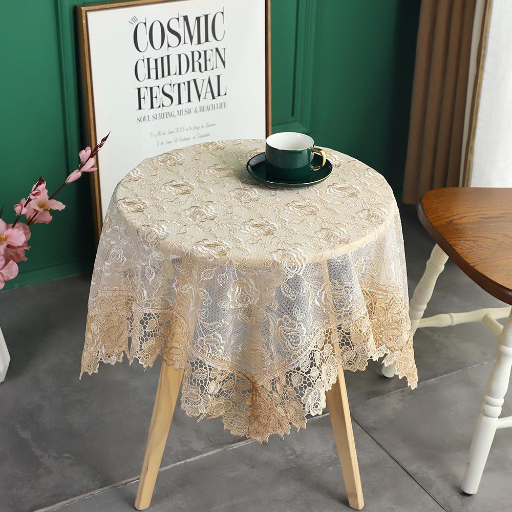 Скатерть бежевая скатерть вышитая скатерть романтическое кружево европейская ажурная прозрачная роза стеклянная пряжа кофейная скатерть