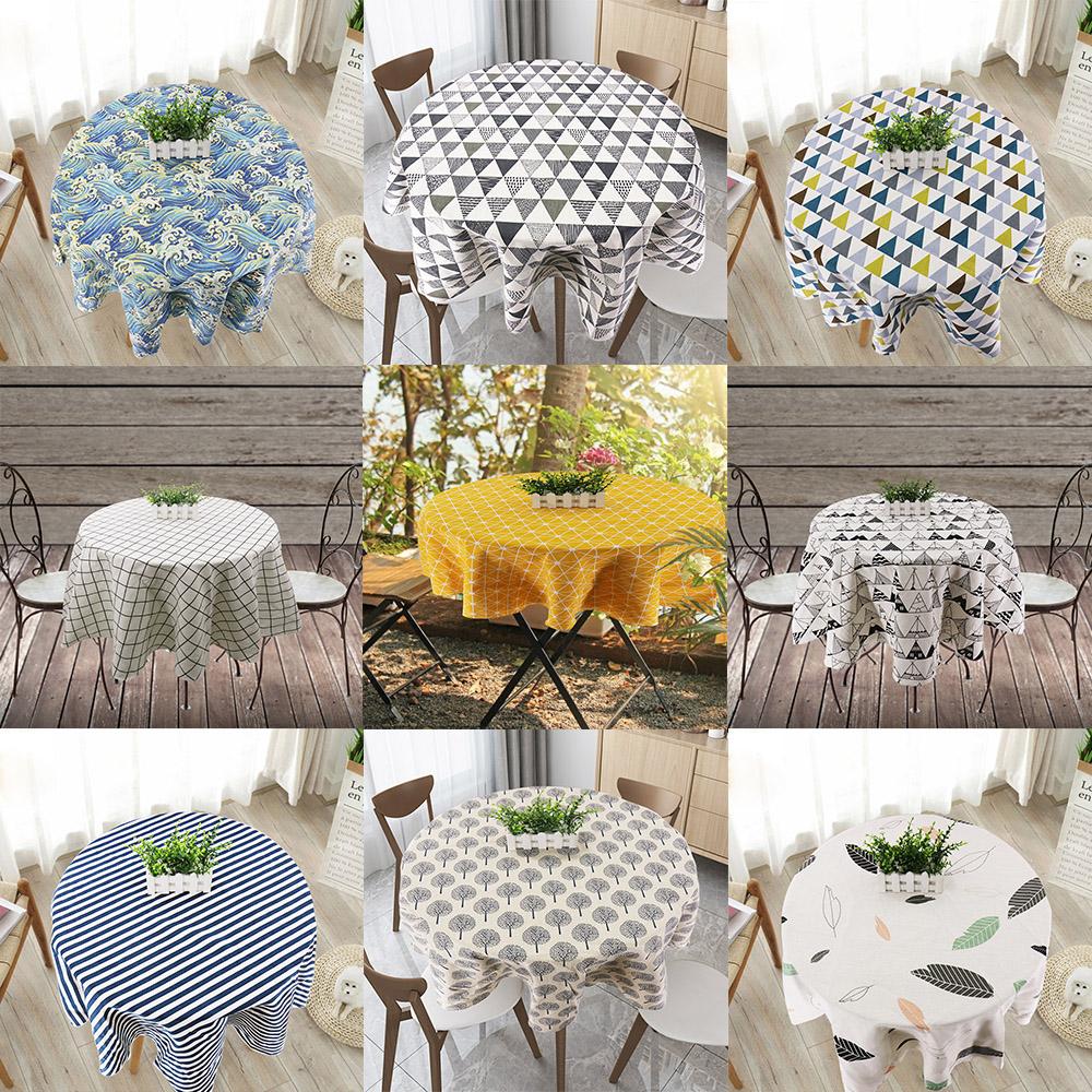 Круглая скатерть из хлопка и льна в скандинавском стиле, кухонная скатерть, маслостойкая, декоративная, элегантная, с рисунком рождественской елки, покрытие стола
