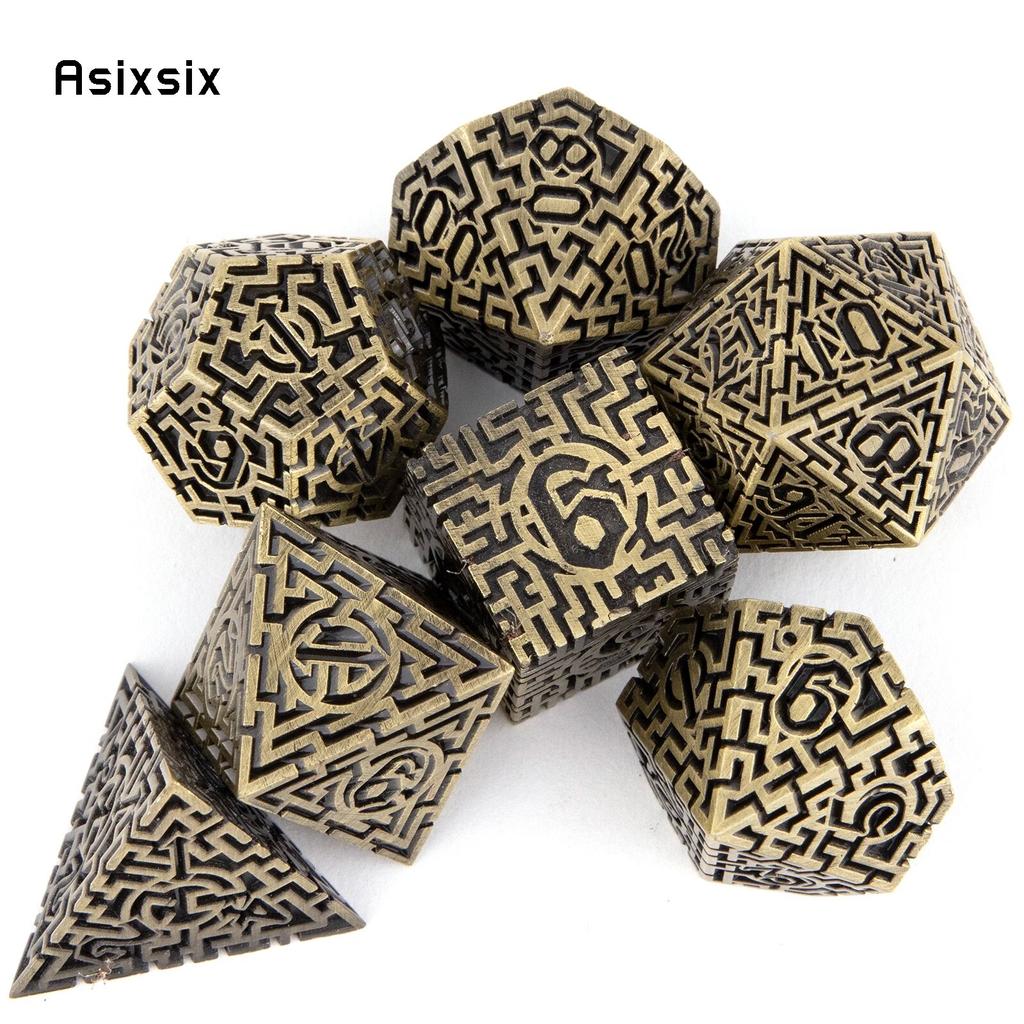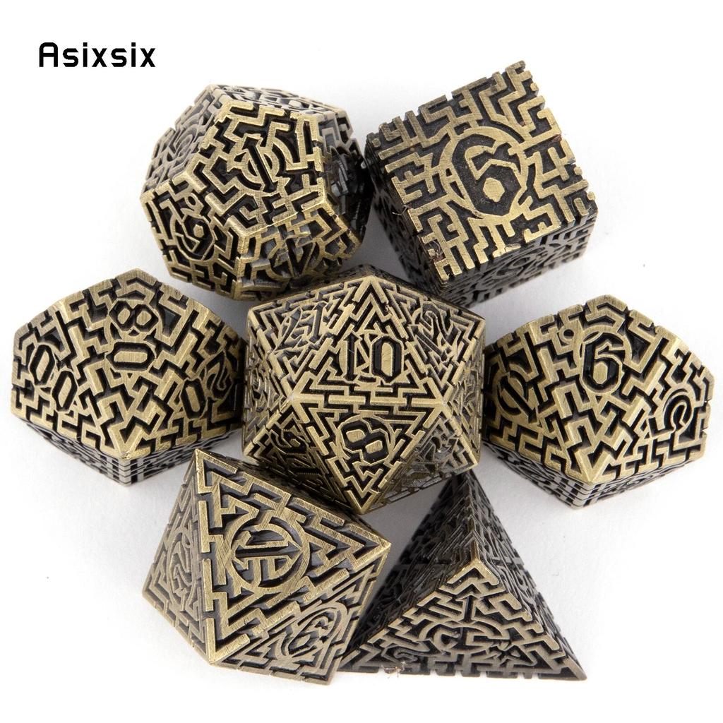 7 шт. медные металлические кубики-лабиринт, набор твердых металлических многогранных кубиков, подходящий для ролевых ролевых игр, настольная игра, карточная игра