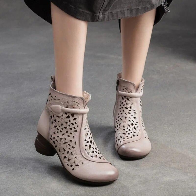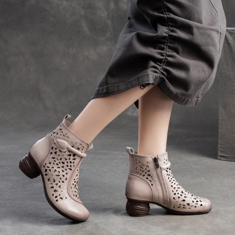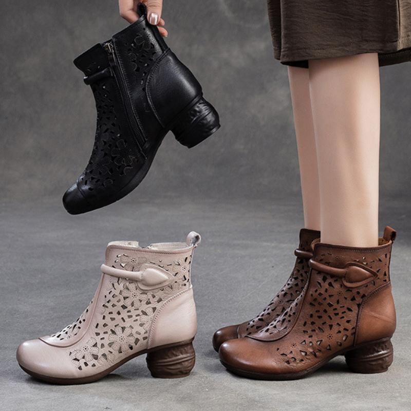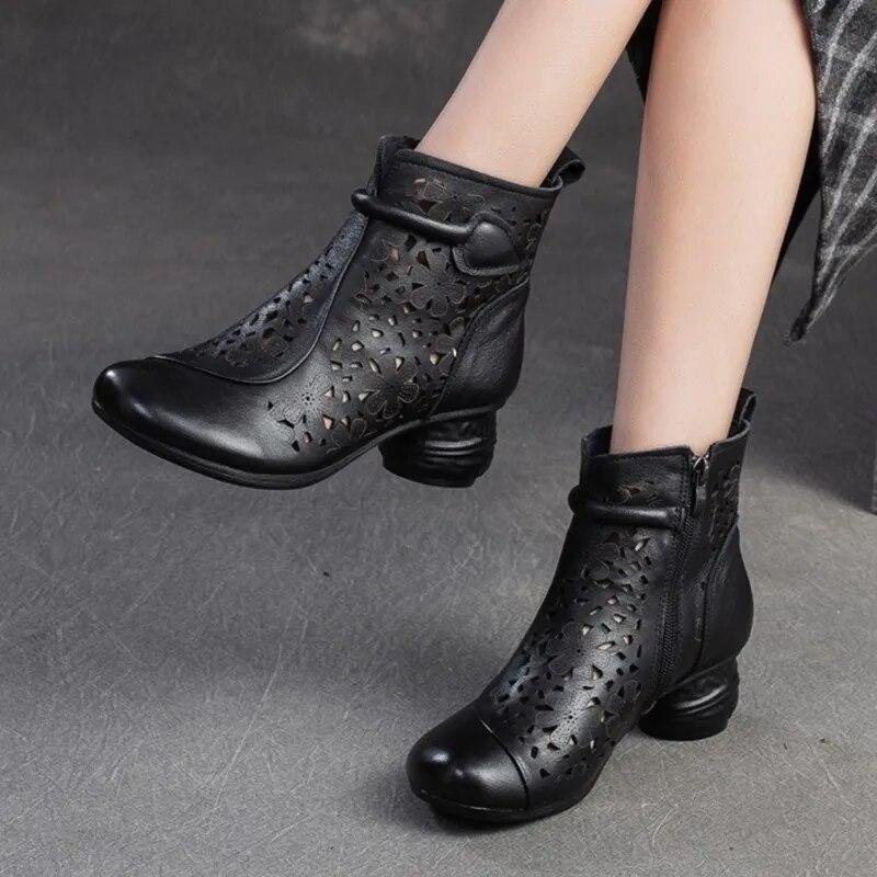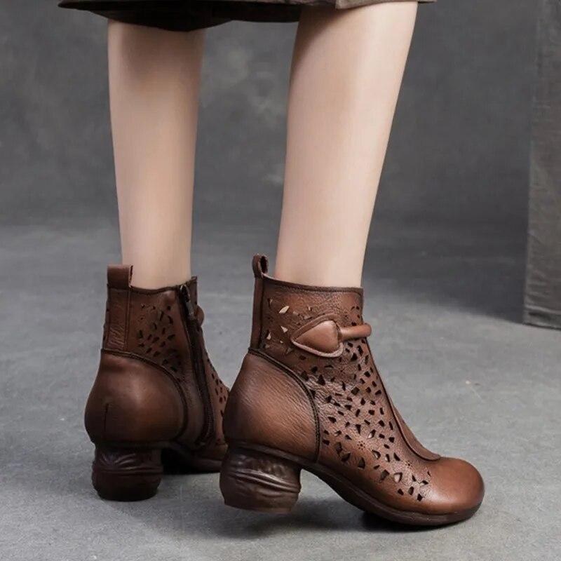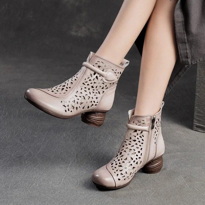 Johnature Дышащие сапоги в стиле ретро, летние сандалии из натуральной кожи, модная женская обувь на высоком каблуке