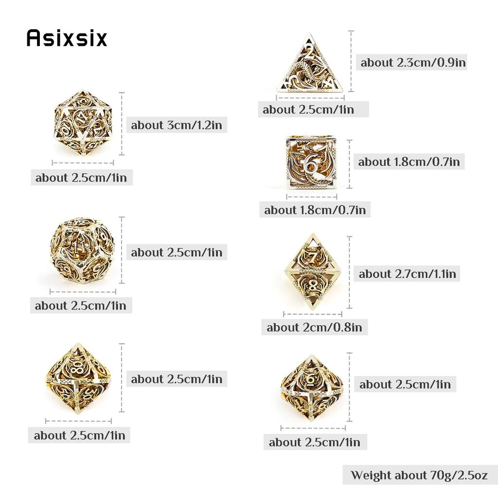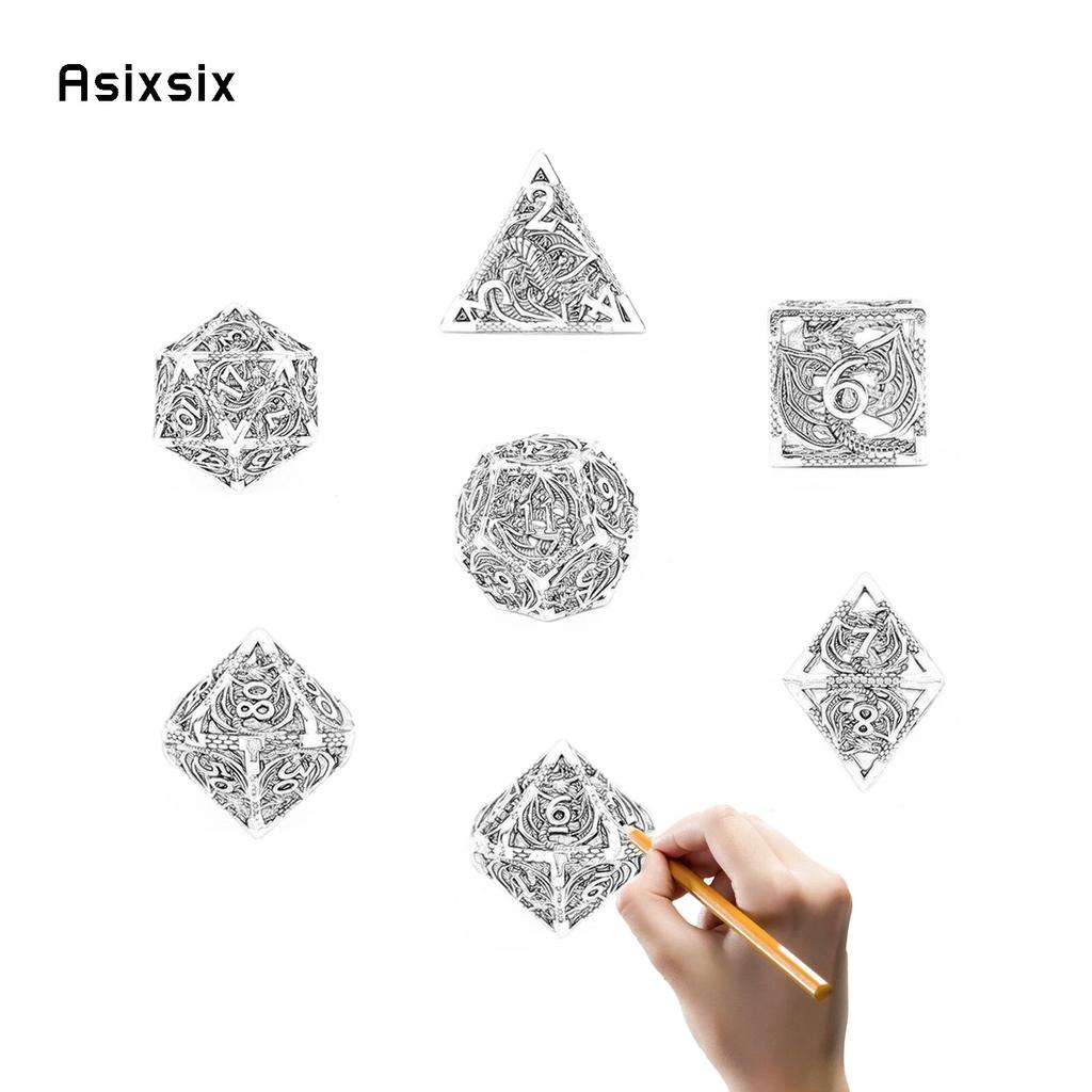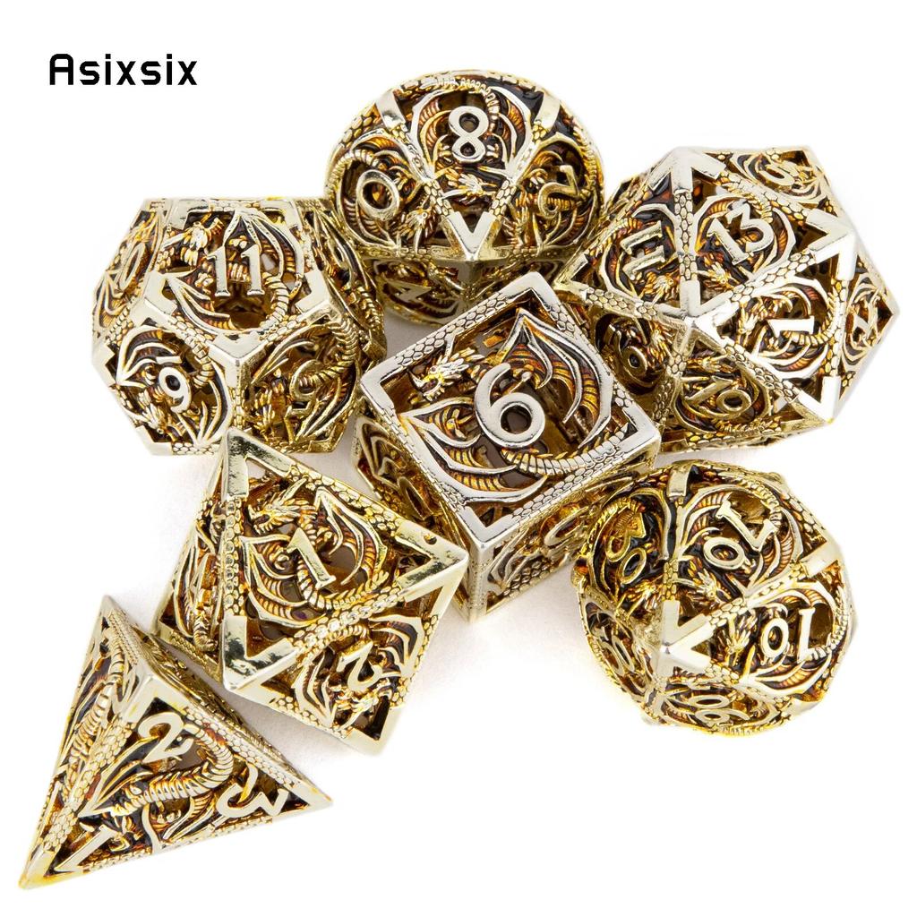 7 шт., металлические игральные кости с золотым драконом, набор полых металлических многогранных кубиков с драконом, подходит для ролевой ролевой игры, настольной игры, карточной игры
