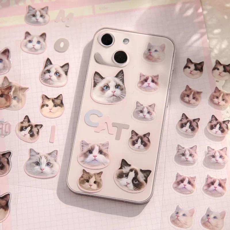 3 шт., наклейка с милым котом, настоящий снимок, Kawaii, канцелярская наклейка с котом, сделай сам, декоративная наклейка с котом для скрапбукинга, милые студенческие принадлежности