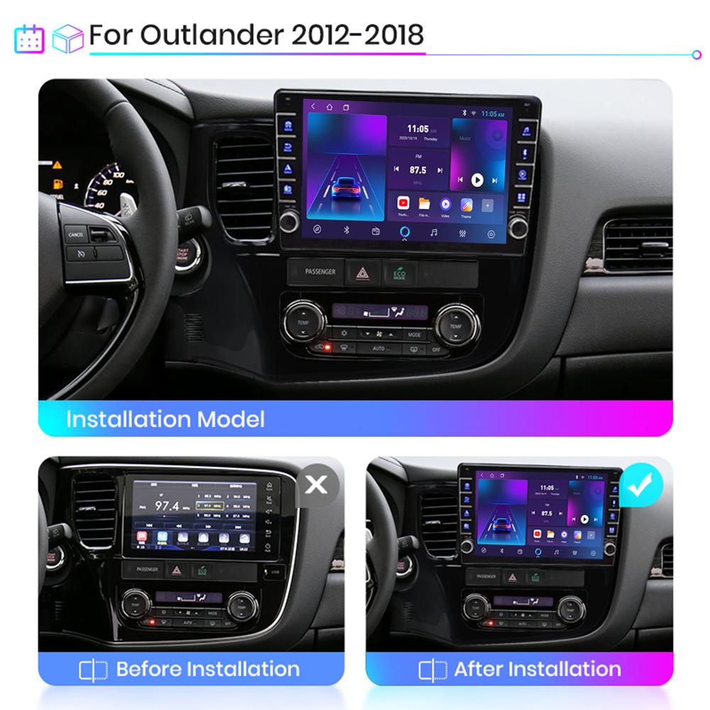 icreative Мультимедийный видеоплеер на базе Android для Mitsubishi Outlander 2012-2018 с кнопкой Carplay WiFi BT 2 Din 2 + 32 ГБ