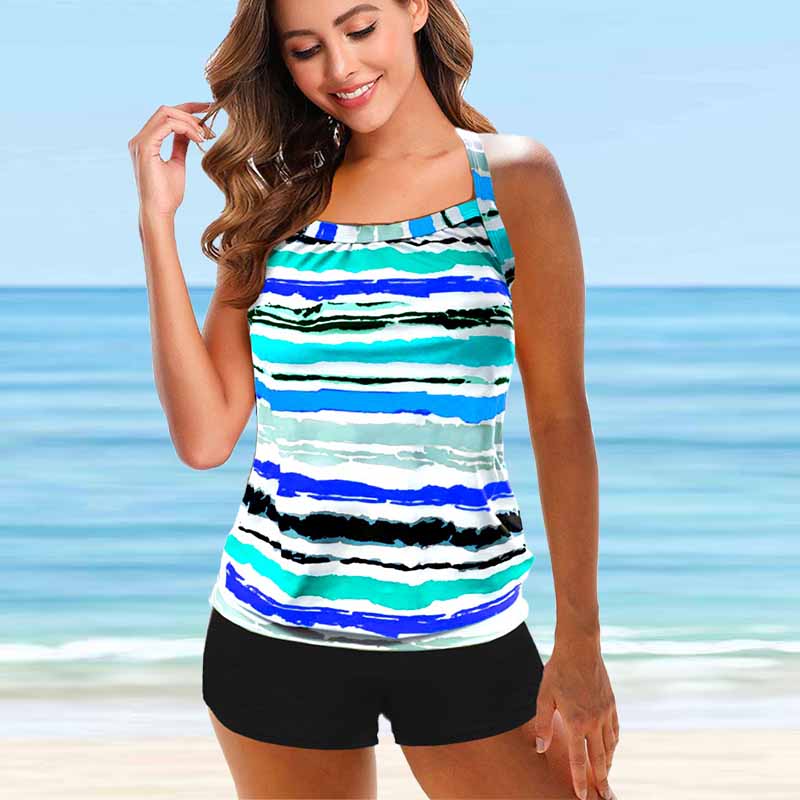Женский купальник с бретелями в тон, полосатый принт, бикини, купальник-танкини