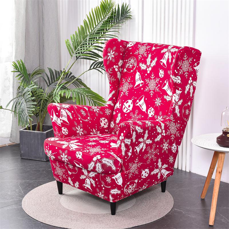 Рождественский чехол для стула с колокольчиком, эластичные чехлы на кресла Kingback из спандекса, эластичные чехлы для одного дивана с чехлом на подушку сиденья