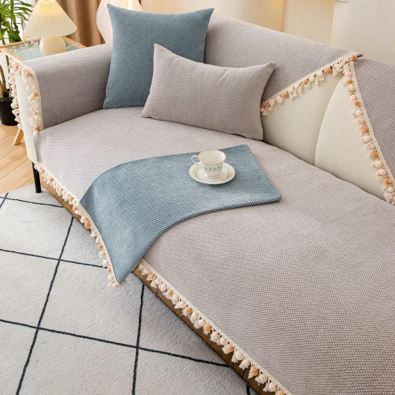 Юбка с кисточками, чехол для дивана, универсальная диванная подушка на четыре сезона, однотонная нескользящая диванная подушка, хлопковое диванное полотенце для гостиной