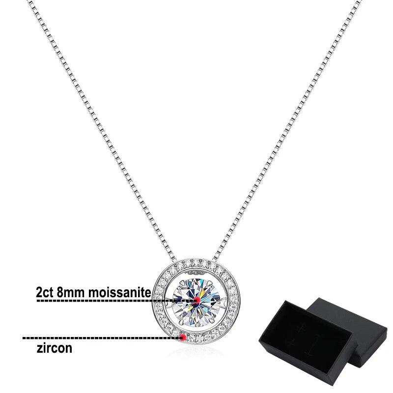 Цвет D, 2 карата, настоящее муассанитовое ожерелье для женщин, цепочка-коробка, винтажный кулон для девочек, 100% стерлинговое серебро S925, платиновые ювелирные изделия