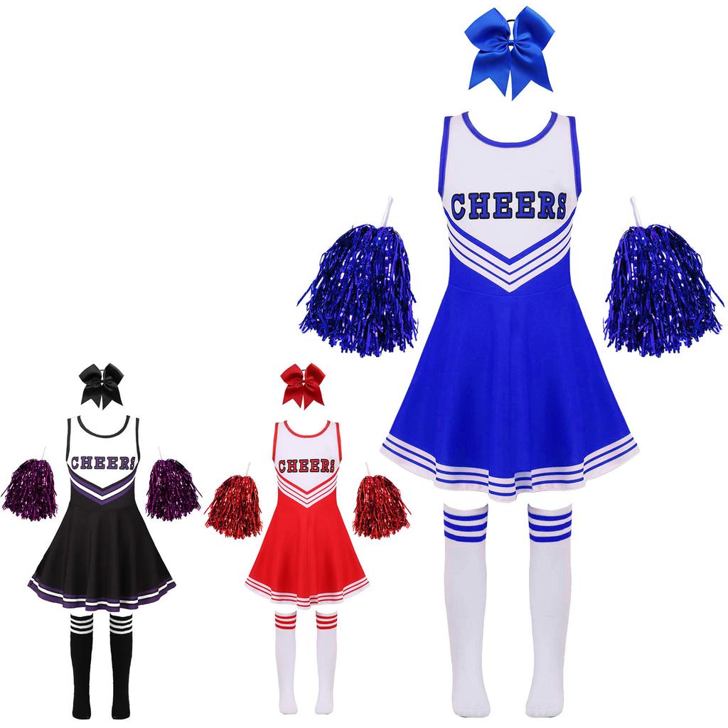 Костюм группы поддержки для девочек, школьная форма, карнавальный костюм на Хэллоуин, платье с головным убором, носки с помпонами — купить товар онлайн с бесплатной доставкой до всему миру!