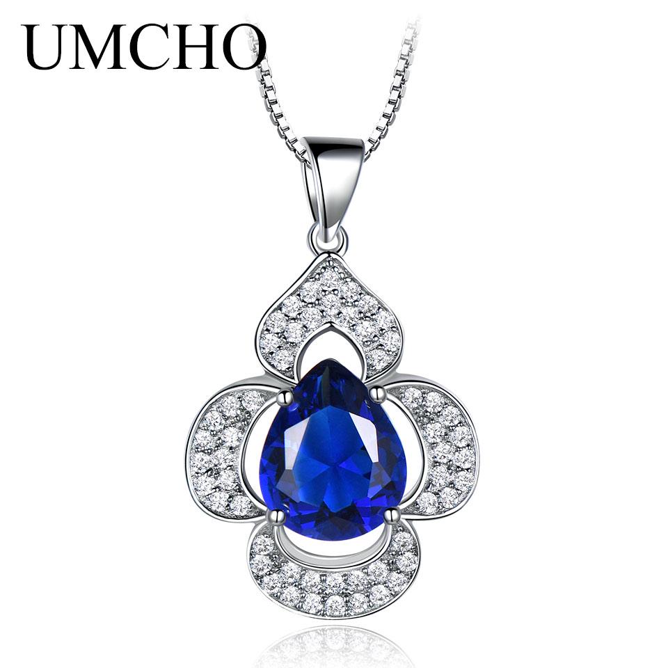 UMCHO Роскошные синие сапфировые подвески ожерелья для женщин ожерелье с каплями воды и цветами на цепочке вечерние украшения — купить товар онлайн с бесплатной доставкой по всему миру!