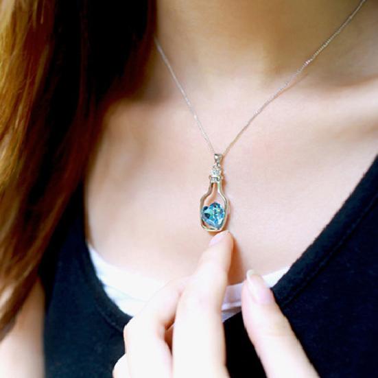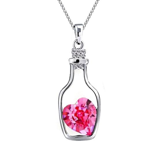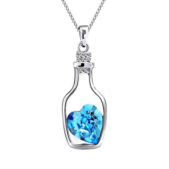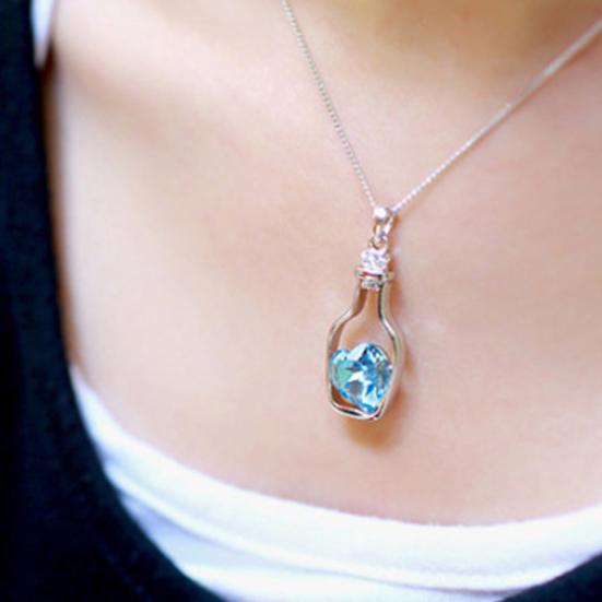 Женщины дрейф бутылка кулон сердце горный хрусталь инкрустация ожерелье ювелирные изделия подарок