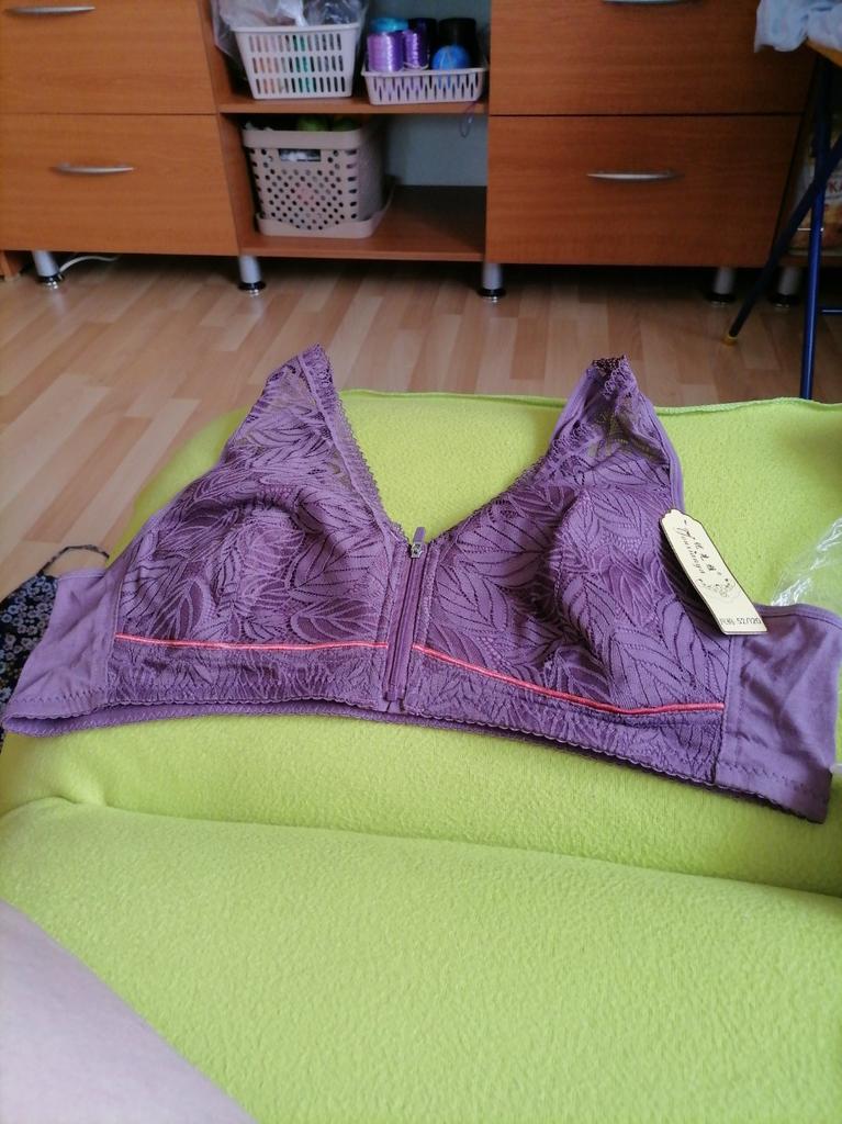 Заказ шёл меньше месяца, бросили в почтовый ящик. Швы ровные, плоские. Края деталей кое-где немного не стыкуются, но это ничего. Торчащих ниток нет. Кружево тонкое, приятное. Продавца рекомендую.
