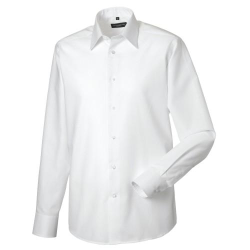 - Back Yoke, Double Folded Seams, Easy-Care.