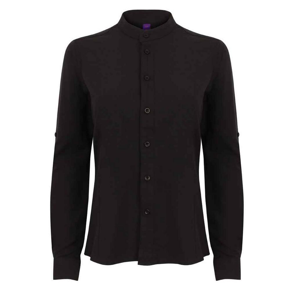 Henbury Женская/дамская антибактериальная рубашка с воротником-стойкой и закатанными рукавами