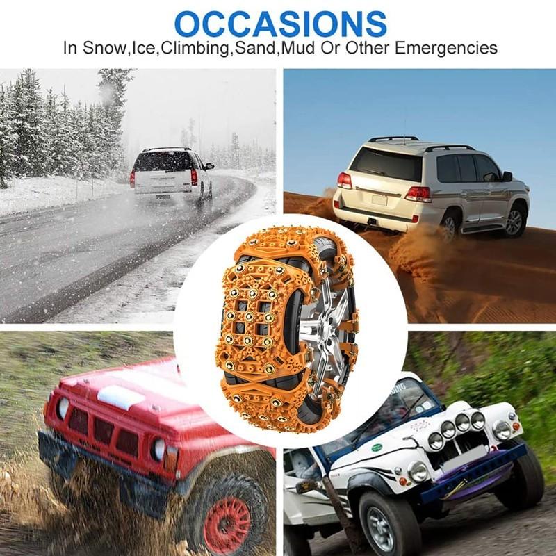 1 Широкий спектр применения: используется для цепей противоскольжения для транспортных средств общего назначения, таких как грузовики, внедорожники, фургоны и легковые автомобили. Подходит для всех моделей с шириной шин от 165 до 275 мм. Но это не железное колесо. Он очень подходит для снега, грязных дорог, альпинизма и треккинга. Легкий и прочный, простой в установке, может эффективно обеспечить безопасность направляющей рейки.