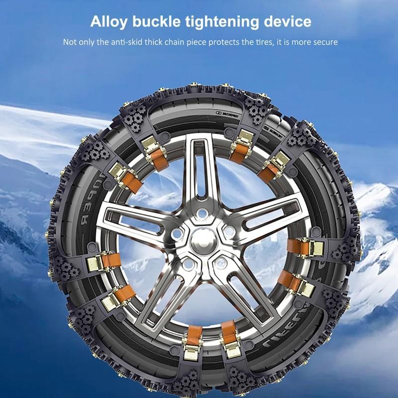 3 Стандартный противоскользящий рисунок: Конструкция цепи противоскольжения увеличивает текстуру области контакта и предотвращает проскальзывание шины. Натяжитель может хорошо удерживать ремешок и будет затягиваться при натяжении.