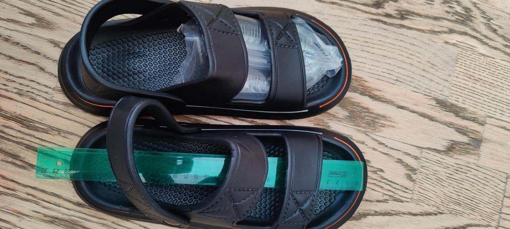 Примерки пока не было. Примерит муж - дополню отзыв. На фото смотрятся лучше, чем в жизни. Обычные резиновые шлёпанцы, разве что есть хлястик на пятку (съёмный) и подошва довольно толстая. Не стоят они этих денег!
