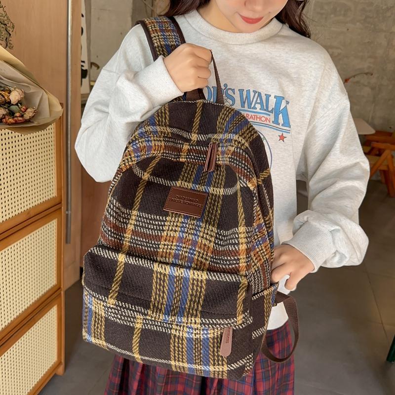 Осенний и зимний шерстяной клетчатый школьный рюкзак для студенток