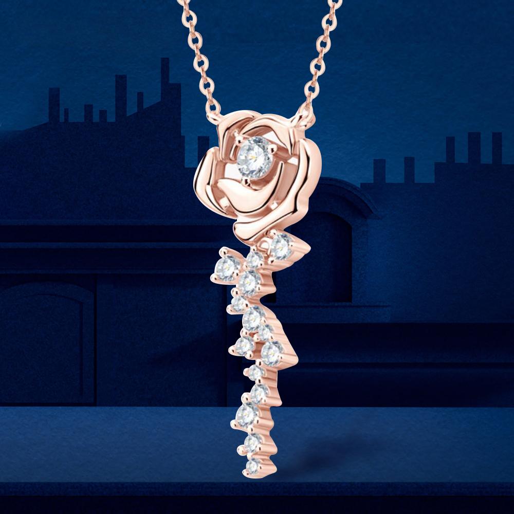 Ожерелье из розового золота с полным муассанитом, оригинальные сертифицированные позолоченные 18-каратной пробы серебро 925 пробы, колье-цепочки с цветком розы для женщин, ювелирные изделия GRA