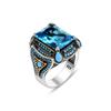 Серебряное мужское кольцо с аквамариновым камнем, уникальное мужское кольцо из стерлингового серебра 925 пробы в стиле Османской империи, элегантный подарок для мужчин