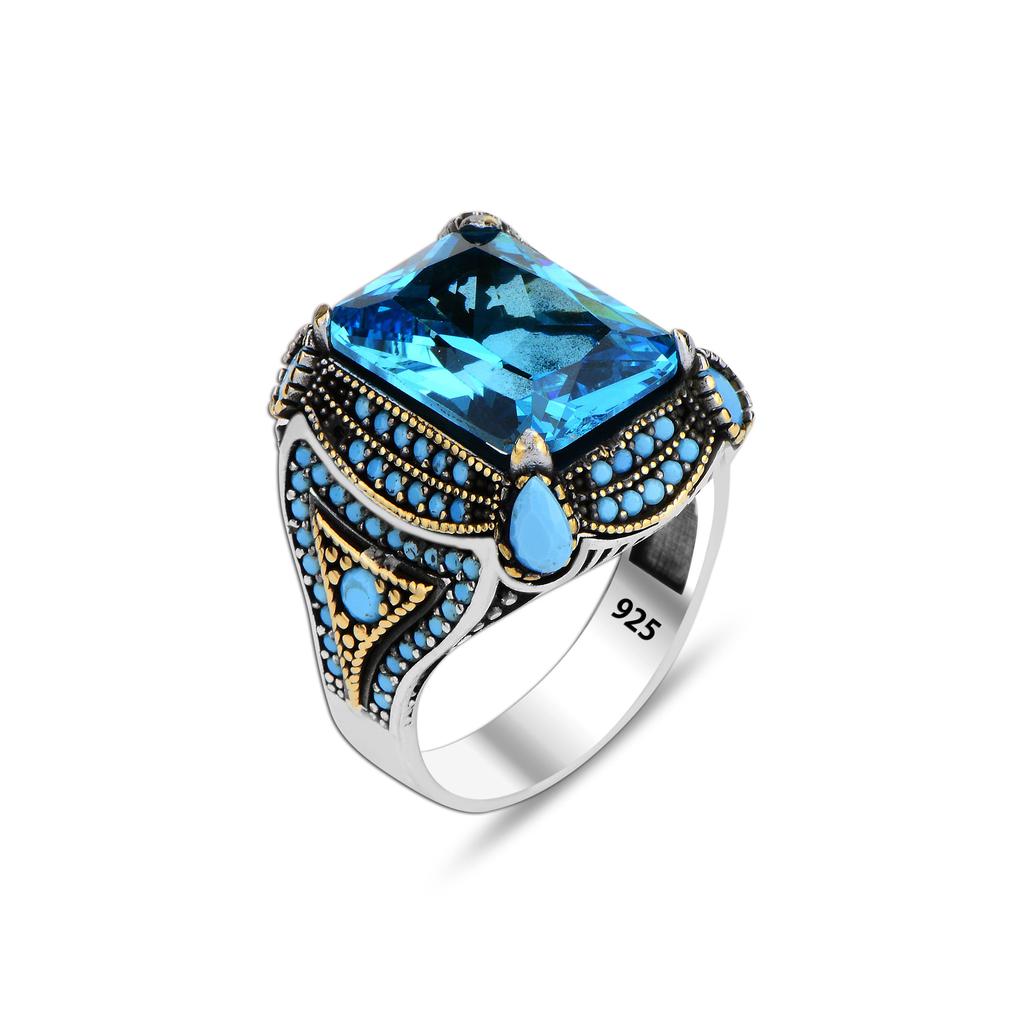 Серебряное мужское кольцо с аквамариновым камнем, уникальное мужское кольцо из стерлингового серебра 925 пробы в стиле Османской империи, элегантный подарок для мужчин — купить товар онлайн с бесплатной доставкой до всему миру!
