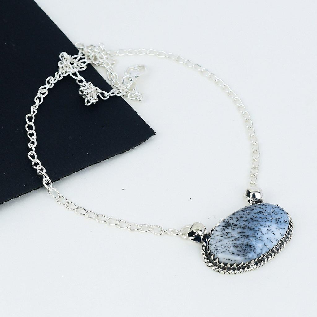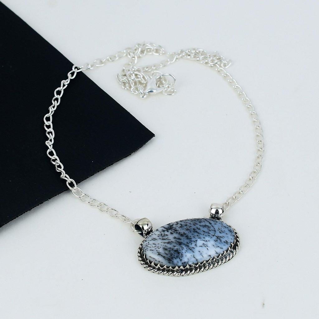 Дендритовый опал, драгоценный камень, ожерелье из стерлингового серебра 925 пробы ручной работы, натуральный дендритовый опал, ювелирное ожерелье ручной работы для женщин, ожерелье для нее