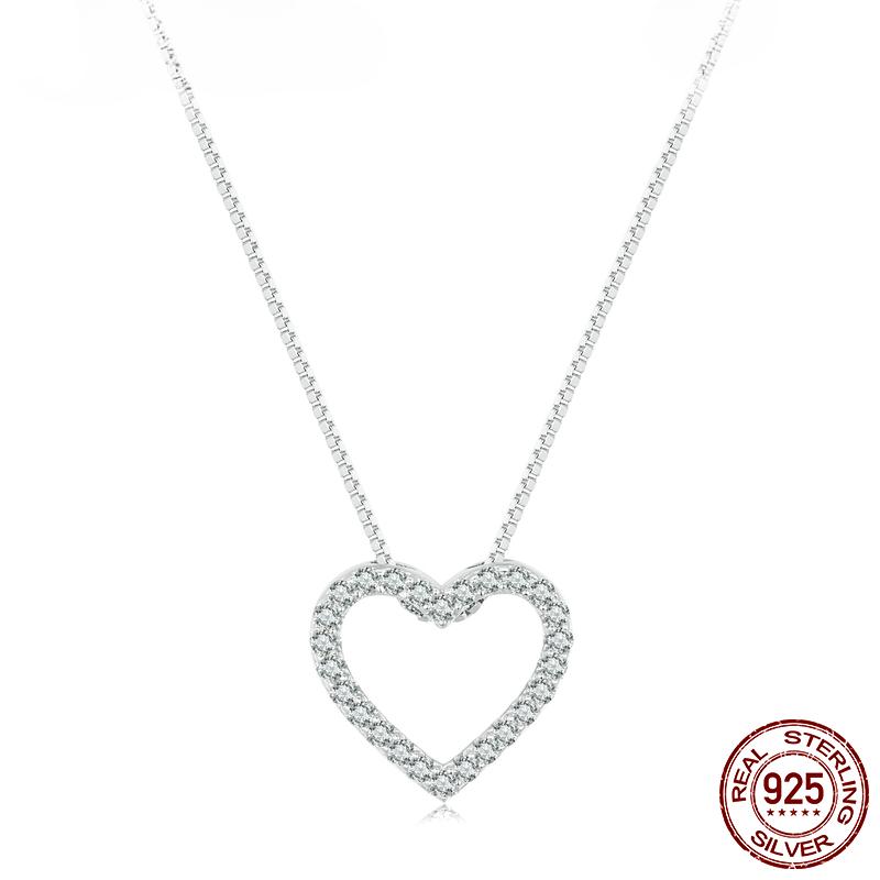 Ожерелья с сердечками для женщин, цвет D VVS1 Муассанит, стерлинговое серебро 925 пробы, минималистичный кулон в форме сердца, ожерелье, обручальное украшение