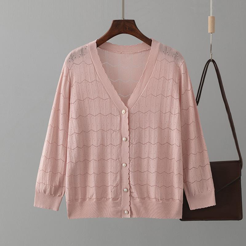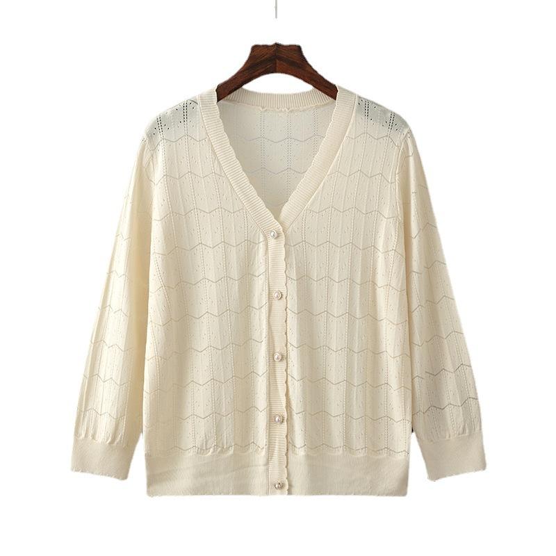 Летний женский вязаный кардиган из тонкого ледяного шелка. Шикарный однобортный однобортный женский трикотаж с v-образным вырезом и длинными рукавами. Топы с полым дизайном. Солнцезащитный кардиган.