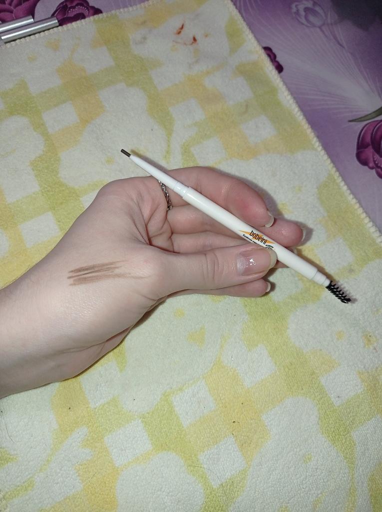 Удобный карандаш,хорошо и легко прорисовывает брови,долго держится.Благодарю.