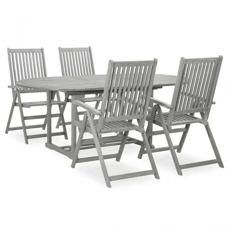 Día y Noche - Día y Noche Juego de comedor para jardín 5 pzas madera maciza acacia gris