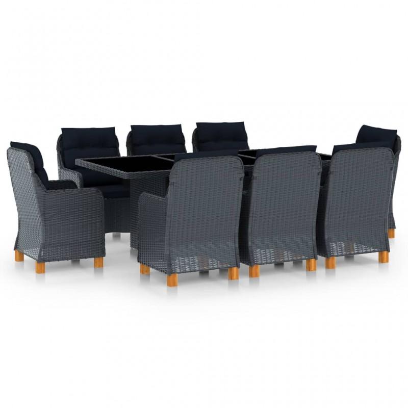 Día y Noche - Día y Noche Set comedor jardín 9 pzas cojines ratán sintético gris oscuro — купить товар онлайн с бесплатной доставкой до всему миру!