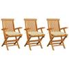 Día y Noche - Día y Noche Sillas de jardín 3 uds madera maciza de teca con cojines beige