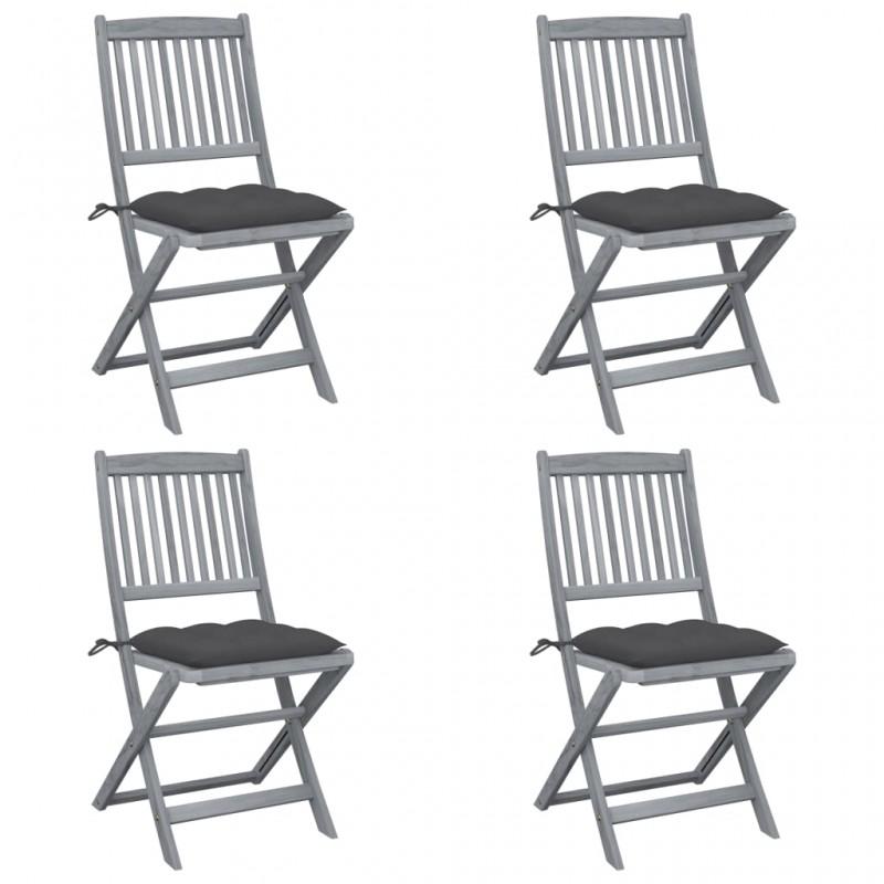 Día y Noche - Día y Noche Sillas de jardín plegables 4 uds cojines madera maciza acacia