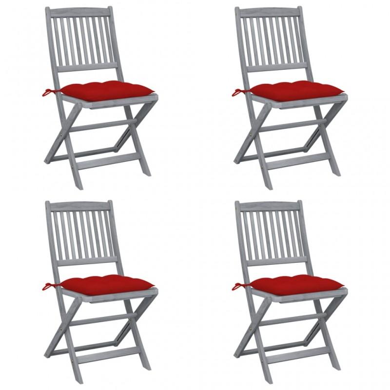 Día y Noche - Día y Noche Sillas de jardín plegables 4 uds cojines madera maciza acacia