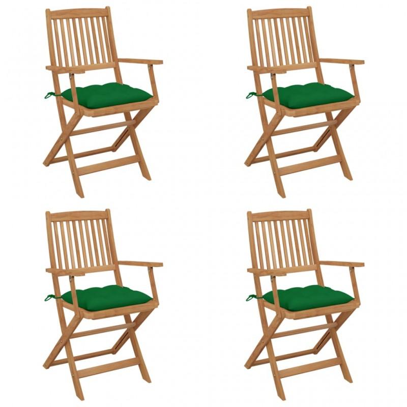 Día y Noche - Día y Noche Sillas de jardín plegables 4 uds y cojines madera maciza acacia