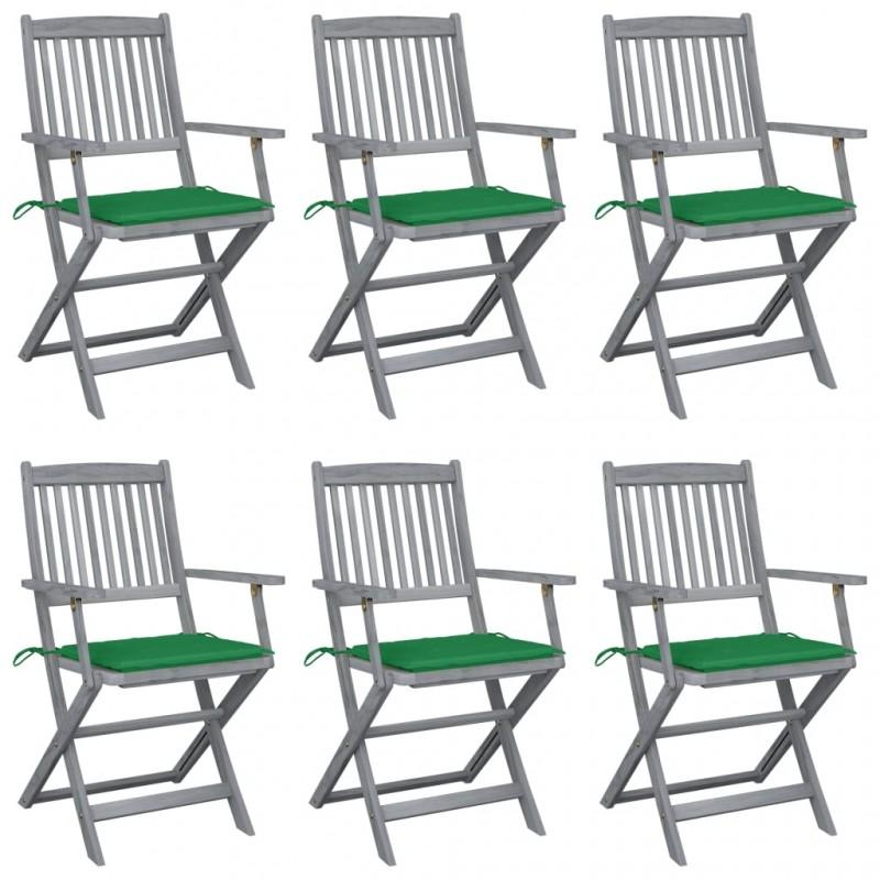 Día y Noche - Día y Noche Sillas de jardín plegables 6 uds cojines madera maciza acacia