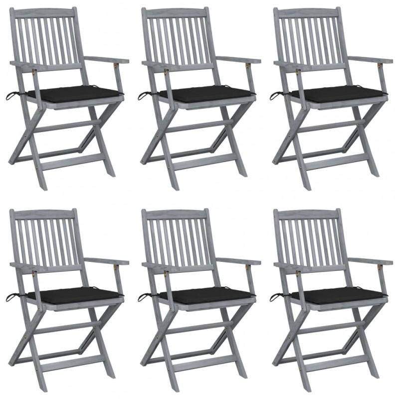 Día y Noche - Día y Noche Sillas de jardín plegables 6 uds cojines madera maciza acacia