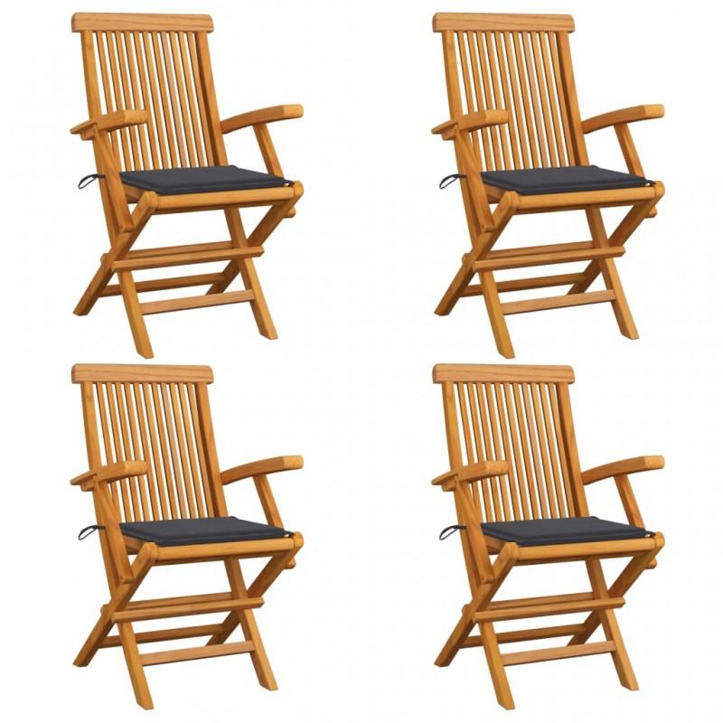 Día y Noche - Día y Noche Sillas de jardín 4 uds madera teca con cojines gris antracita — купить товар онлайн с бесплатной доставкой до всему миру!
