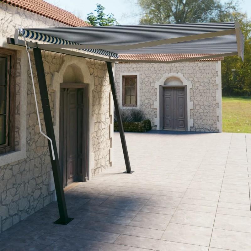 Día y Noche - Día y Noche Toldo manual retráctil con postes azul y blanco 4x3 m